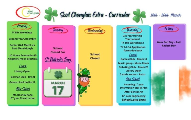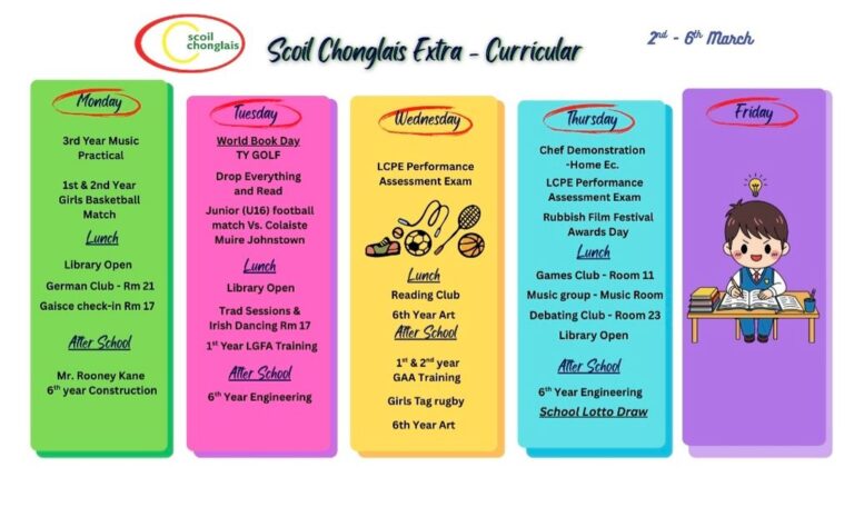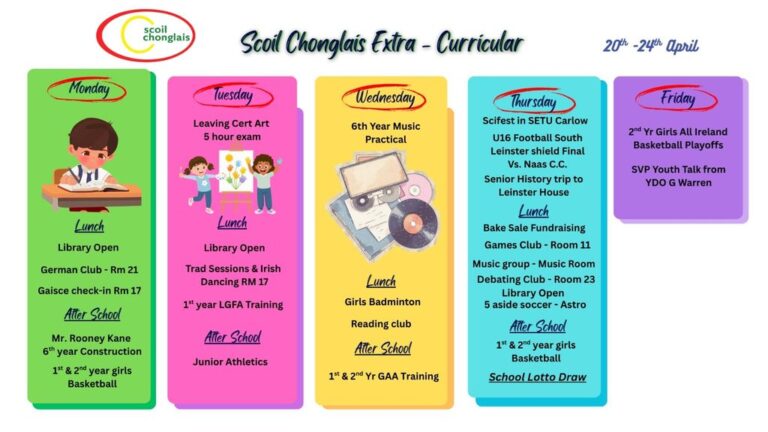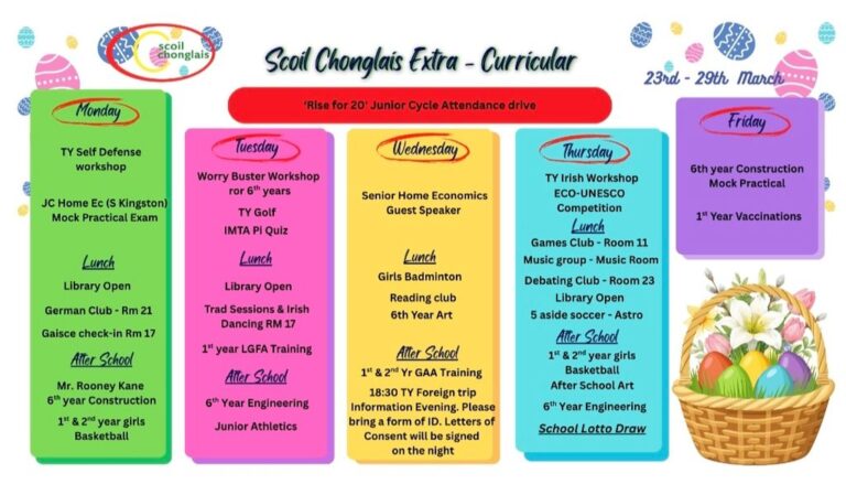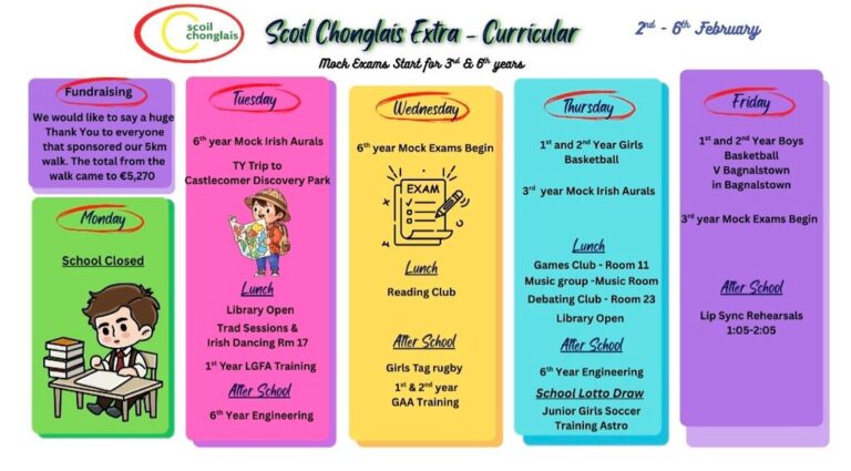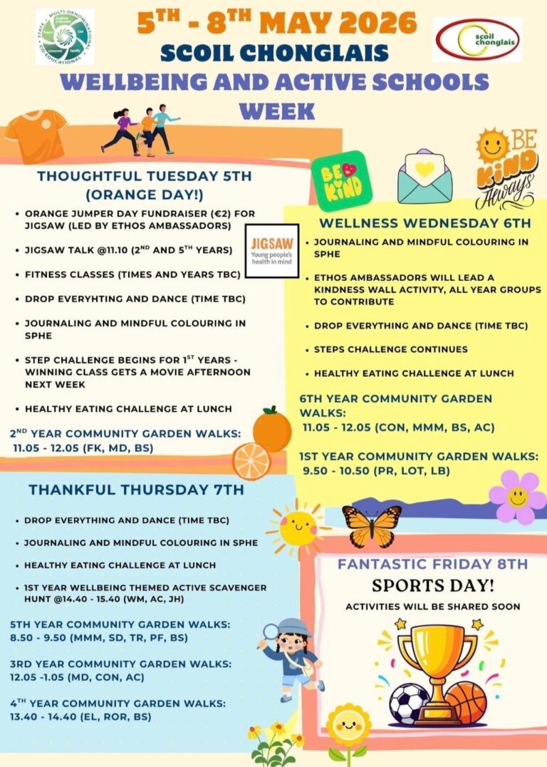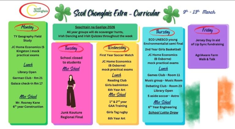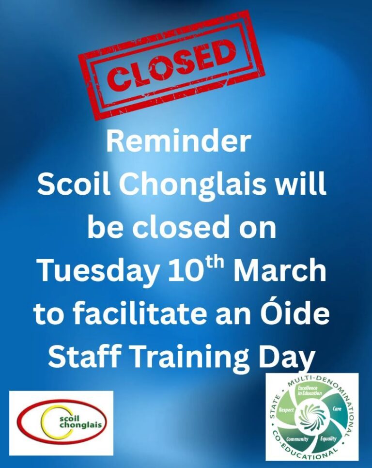 Welcome to our website. I hope that it will give you an insight into life here in Scoil Chonglais Post Primary School. We aim to provide an excellent standard of education to all of our students. We offer a broad range of subjects and a balanced curriculum and we provide a huge range of co-currricular and extra curricular activities. We have excellent facilities and we work hard each day to help all of our students to reach their full potential.
