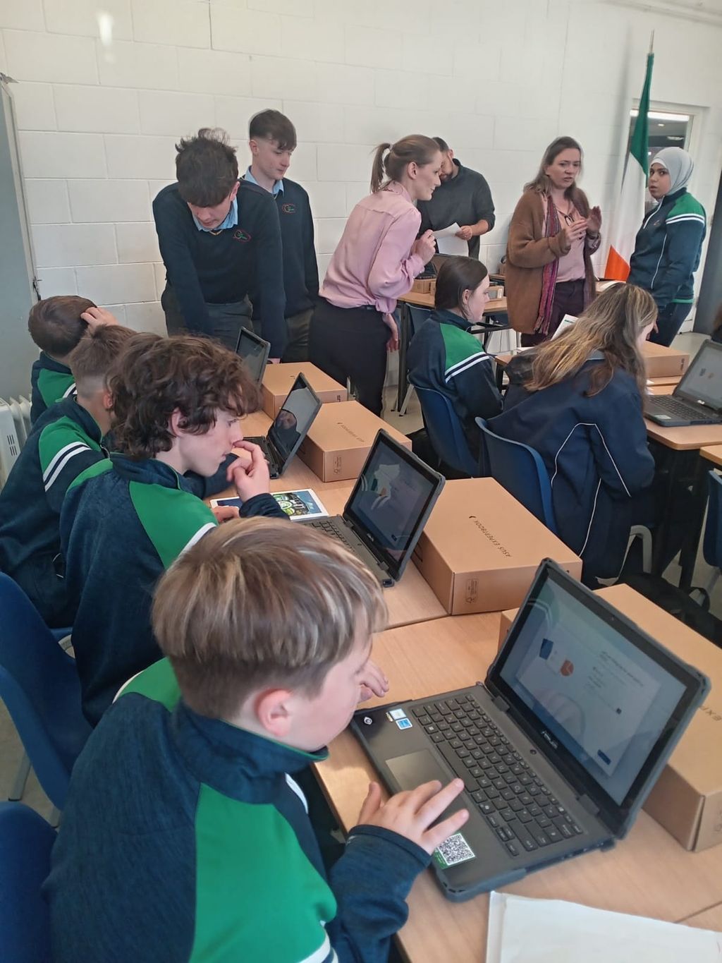 Great excitement this morning as first years receive their devices from Olive this morning. Thanks to the Meithal leaders who are on hand to help.