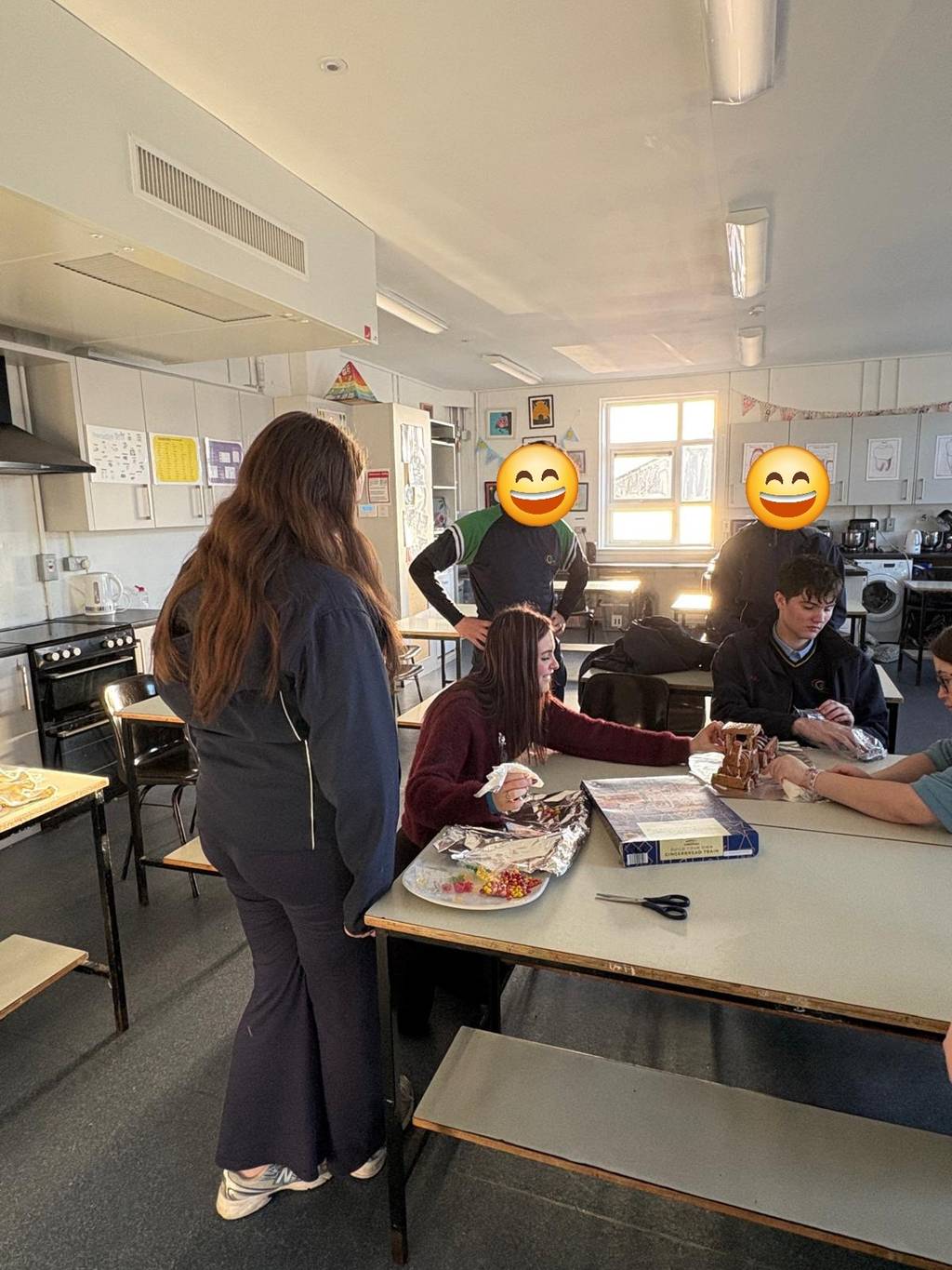 5th yr HCT had a very productive morning assembling a gingerbread train that Mr Ahern their year head kindly gifted them.