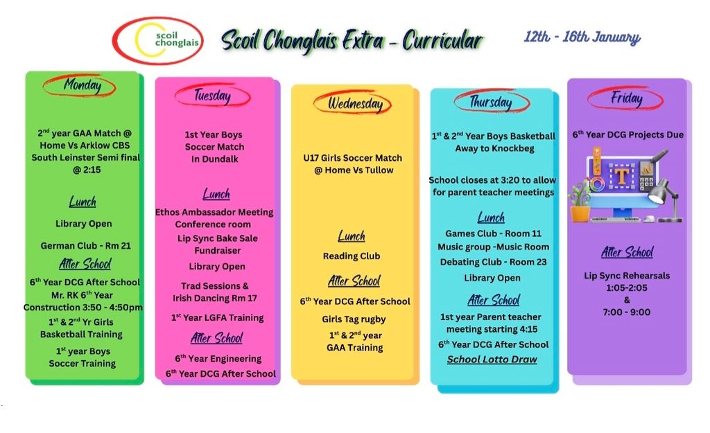 Ms L O’Neill has organised a Bake Sale for Tuesday 13th Jan. If your child wishes to purchase anything can