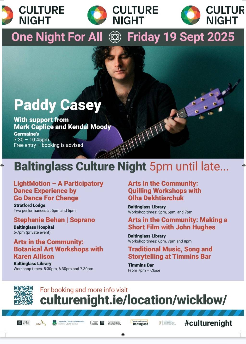 Culture Night takes place in Baltinglass this Friday 19th September! The workshops are open to all ages. We are delighted to see some of our past pupils involved in this event.