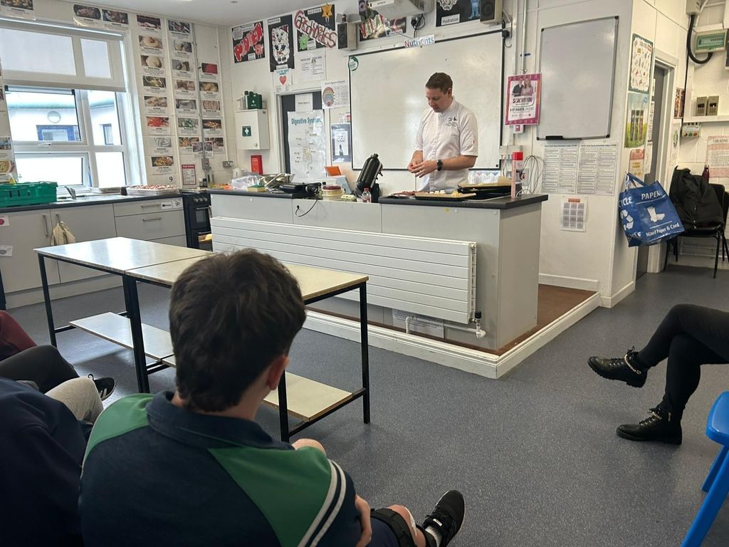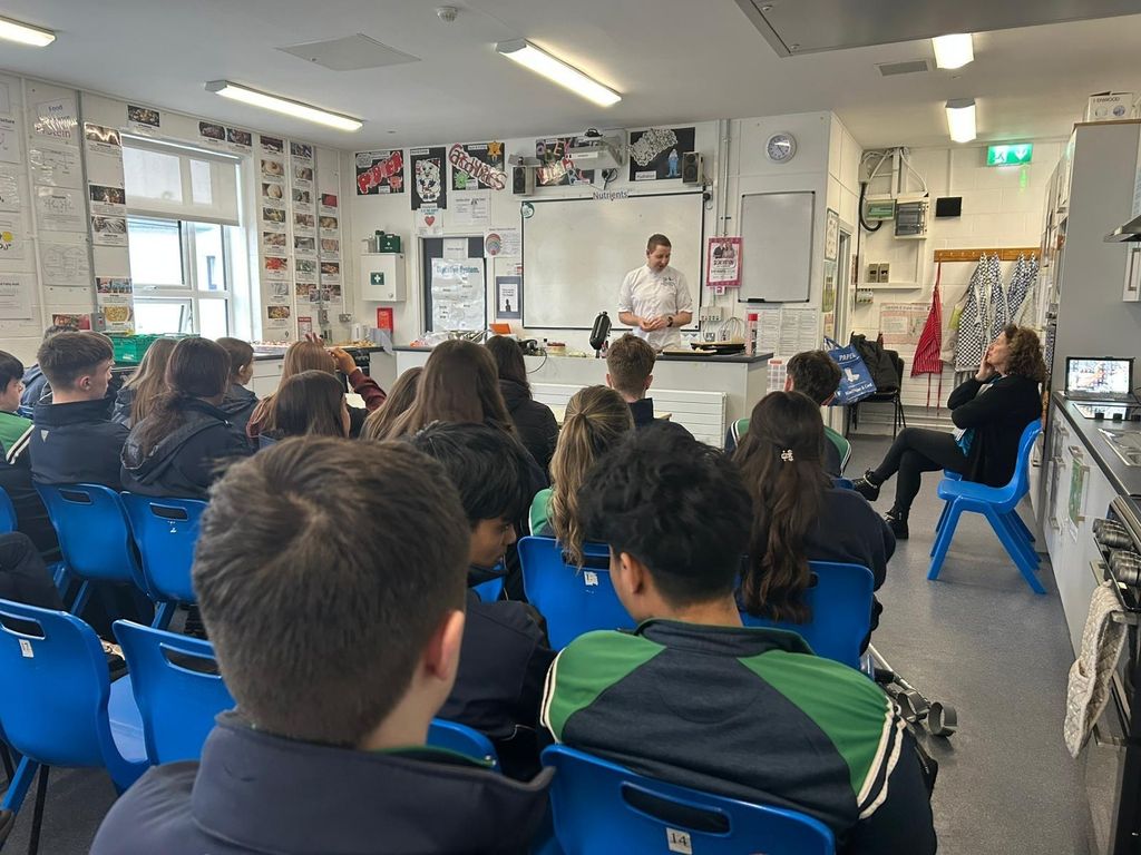 Today we were delighted to welcome Tom Phelan, Head Pastry Chef from Mount Juliet, to Scoil Chonglais for a special demonstration with our TY, LCA and 5th Year Home Economics students.It was a truly engaging and informative session where students had the opportunity to see professional pastry techniques in action. The demonstration was both inspiring and educational, and the delicious treats were an added bonus!A huge thank you to Tom Phelan for taking the time to visit us and share his expertise and passion for pastry with our students.
