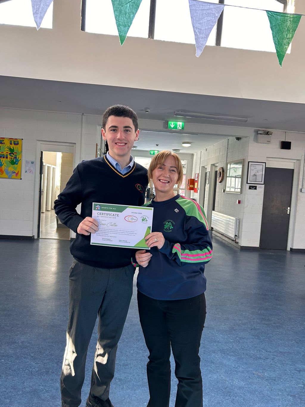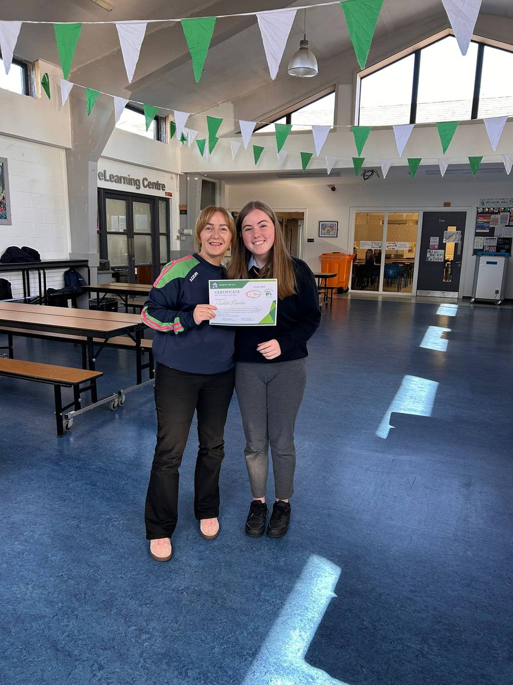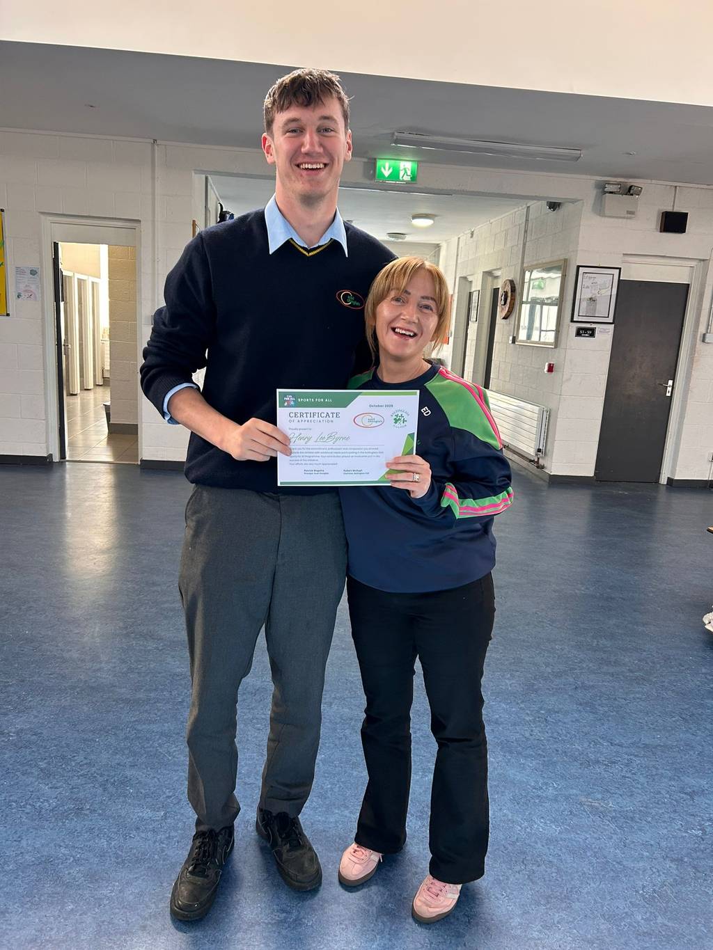 Our wonderful Sports for All coaches were presented with their Certificates a couple of weeks ago. These dedicated students gave up their time to coach children with additional needs in the GAA club each week over the summer. This role is incredibly important to the children who participate and we are sure these student coaches had a rewarding experience also. A huge thank to Catherine Fleming for coordinating and to Paula Doyle for presenting the certificates, particularly the morning after the Couty Final!!