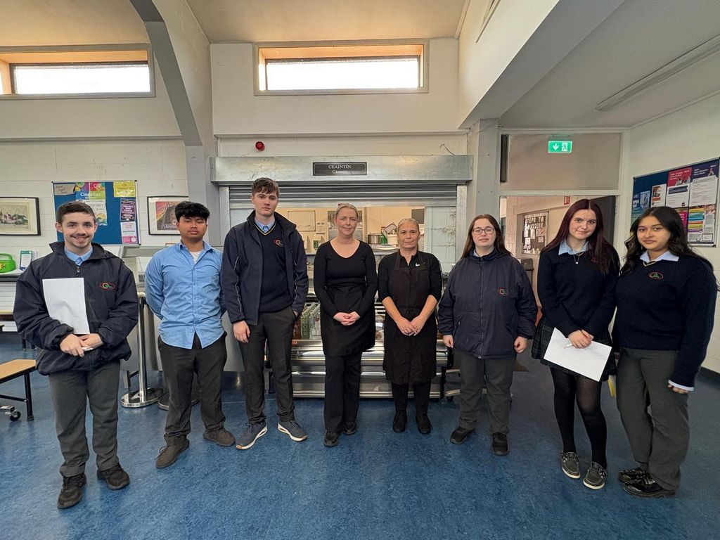 5th yr HCT class had a very informative visit to the school canteen yesterday to find out about the importance of health and safety and how the canteen is organised. Thanks so much to Laura and Bernie!