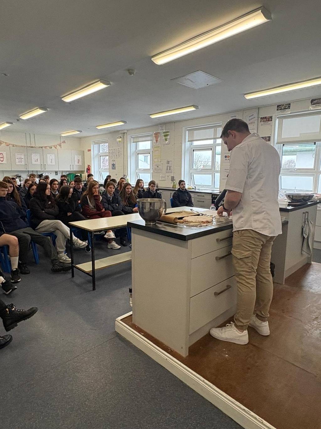 Today we were delighted to welcome Tom Phelan, Head Pastry Chef from Mount Juliet, to Scoil Chonglais for a special demonstration with our TY, LCA and 5th Year Home Economics students.