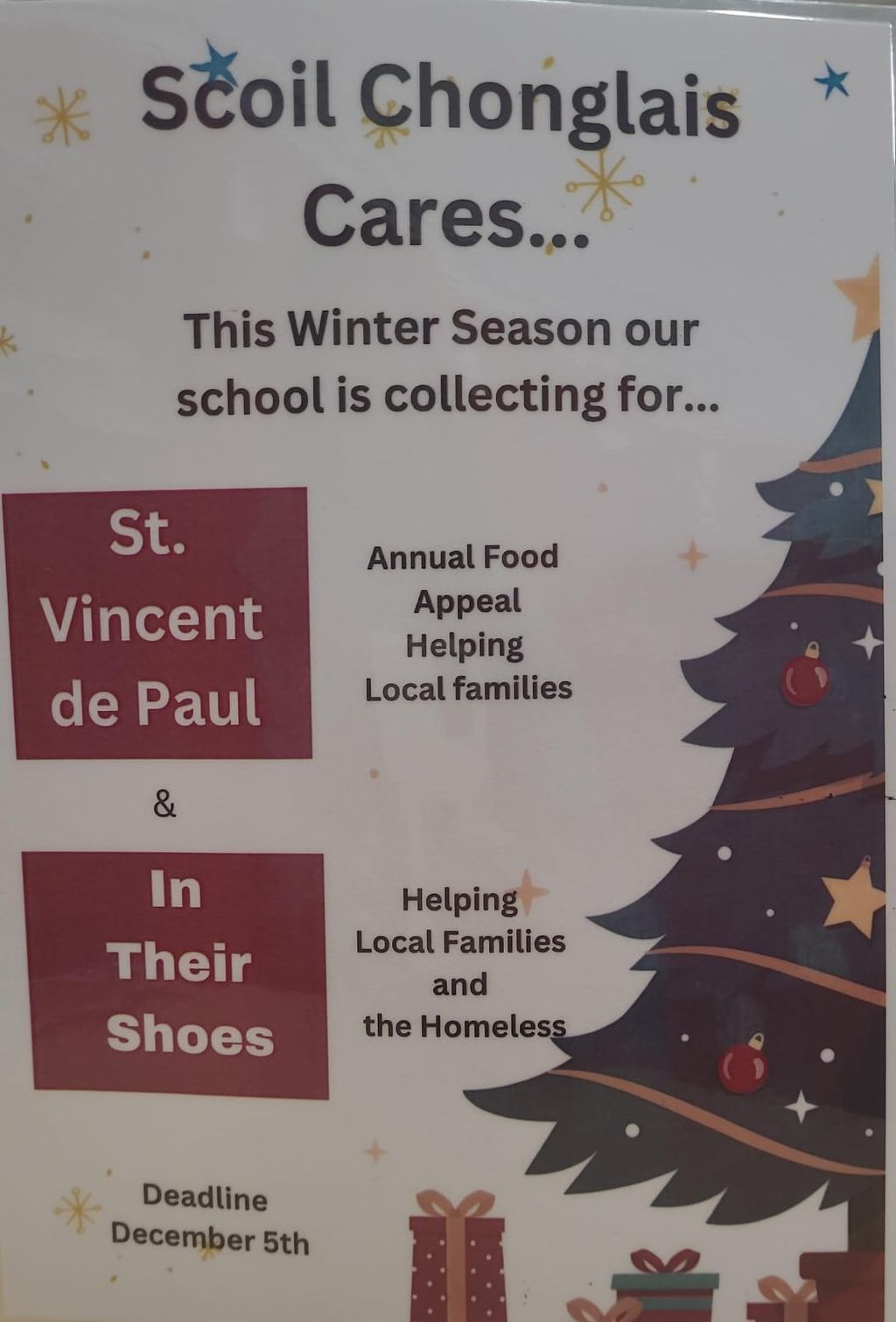 As part of our Scoil Chonglais Cares initiative, students and staff are coming together to help those in need this Christmas.