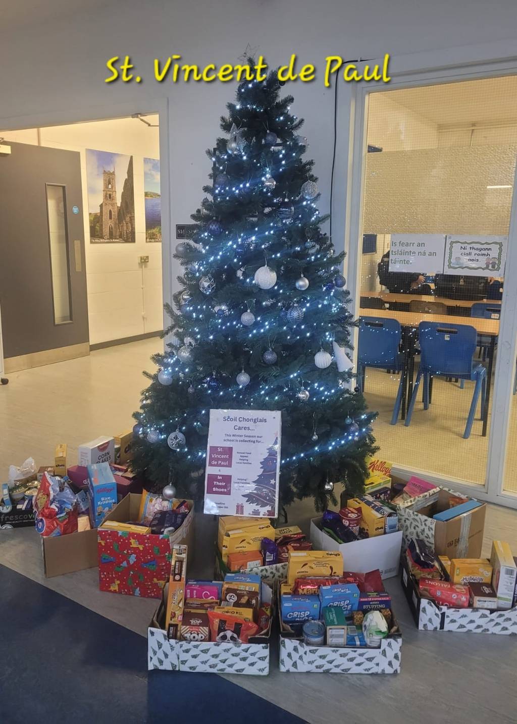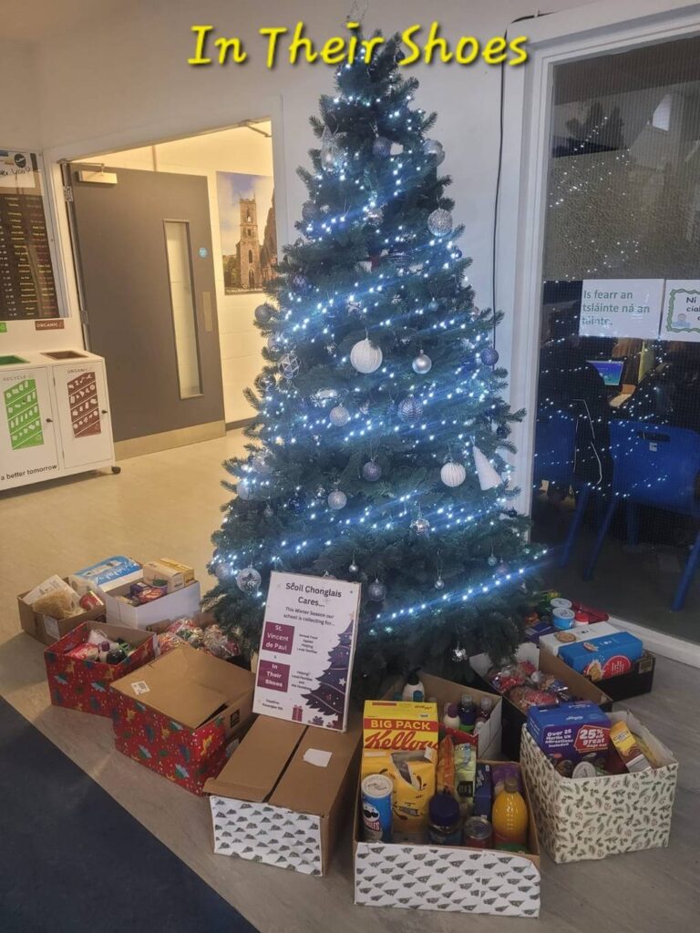 On behalf of all at Scoil Chonglais we are delighted to announce that we donated over 22 boxes of food and toiletries to SVP and In Their Shoes. Both do amazing work in our community. Ms Kavanagh, Ms Ryan and Ms Harney who like to sincerely thank all who donated.