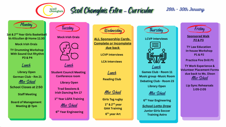 Welcome to our website. I hope that it will give you an insight into life here in Scoil Chonglais Post Primary School. We aim to provide an excellent standard of education to all of our students. We offer a broad range of subjects and a balanced curriculum and we provide a huge range of co-currricular and extra curricular activities. We have excellent facilities and we work hard each day to help all of our students to reach their full potential.